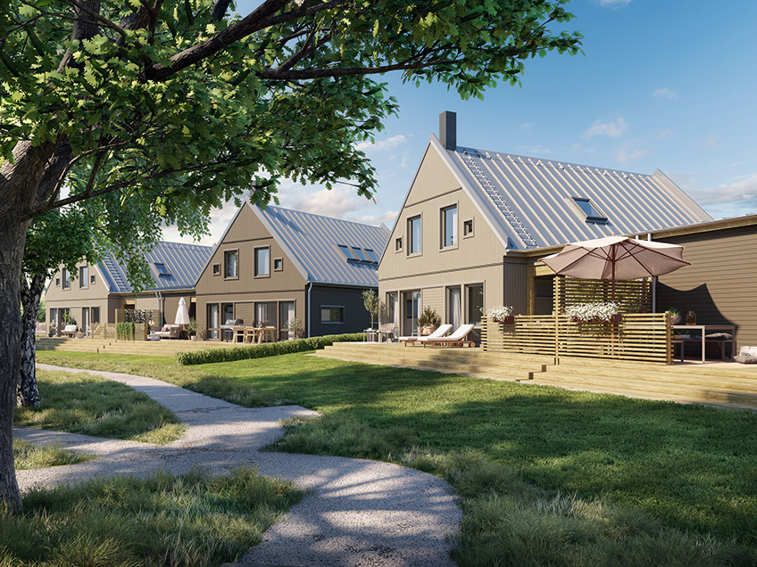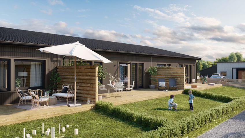 Totalt bygger OBOS nio bostäder i projektform på Ranagård i Halmstad – inflyttningsklara kedjehus med en boarea på 155 kvm….