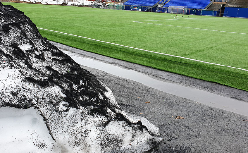 Det förberedande markarbetet på grusplanen nedanför Trollehöjdskolan i centrala Mullsjö…