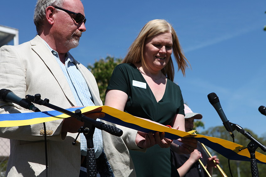 Erik Pelling, kommunstyrelsens ordförande i Uppsala, klippte bandet tillsammans…