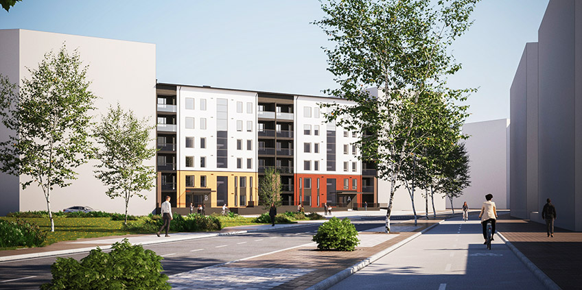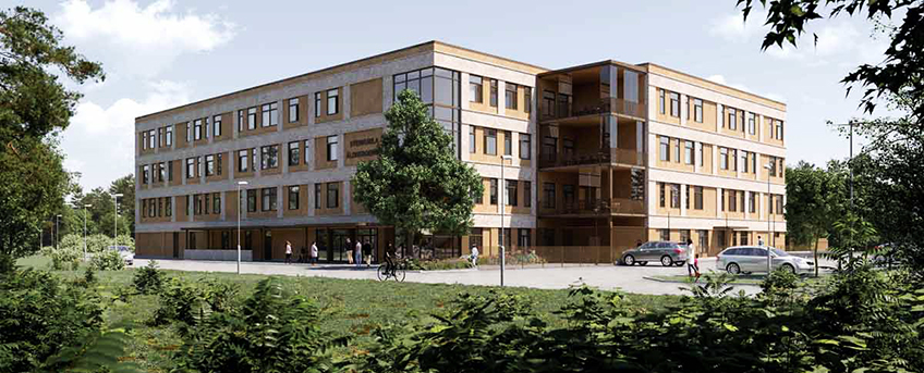 På Läroverksvallen i Borlänge uppförs 101 hyreslägenheter i en…