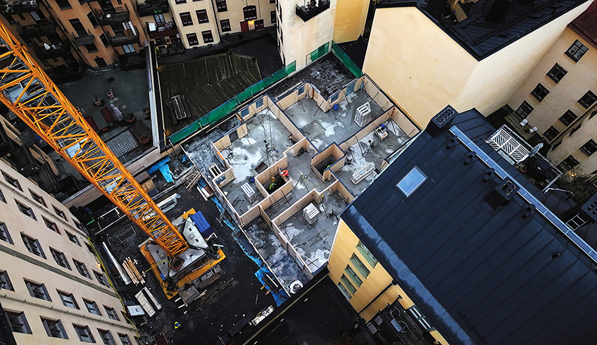 Mitt på en innergård i Vasastan i Stockholm byggs just nu ett gårdshus med 20 hyreslägenheter. Husets…