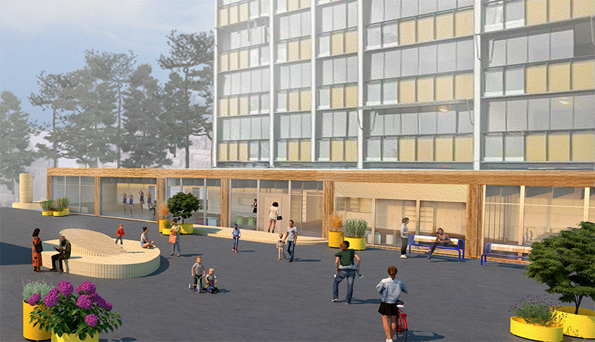 Presentationen av det vinnande teamet och deras förslag för upprustning och ny…